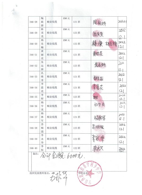 第346批受助学生名单(宁利中学初一40名,沐雪萌萌、顺业线缆捐助)