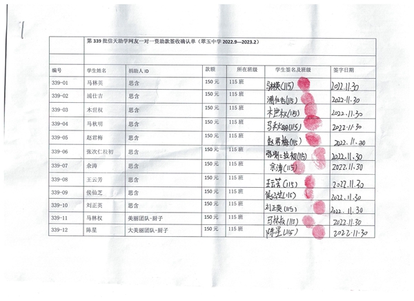 第339批翠玉中学(2022年9月到2023年2月)受助学生签收单