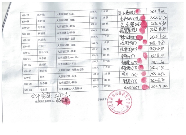 二、本批本批第339批39名学生由1)思含捐助10名(339-01至339-10);2)大美丽团队捐助29名(339-11至339-39);