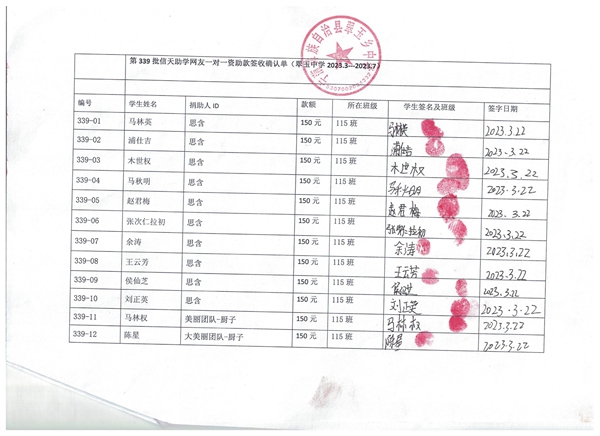 第339批翠玉中学(2023年3月-2023年7月)受助学生签字确认单