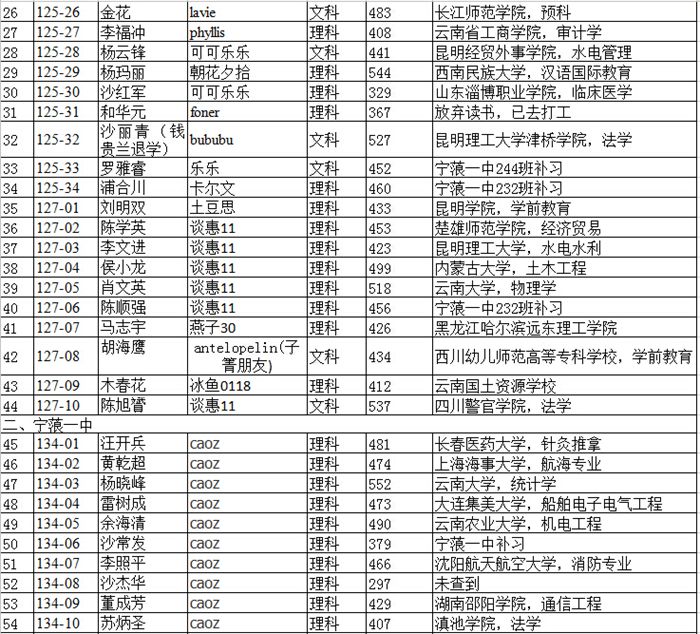 注:120批马边中学的30名学生高考情况已转给资助人liona,其中11名学生考入大学,编入大学第31批,由老朋友特首继续资助。