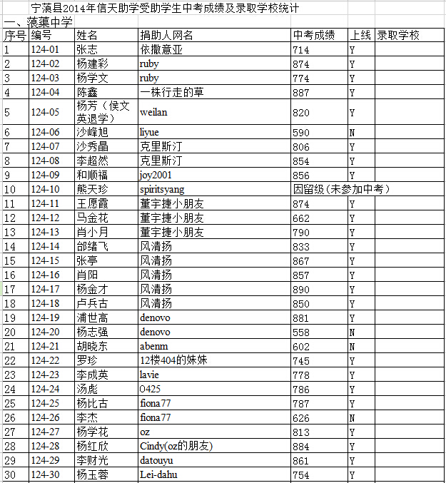 2014年信天助学初中生毕业中考成绩(2014年8月19日更新)