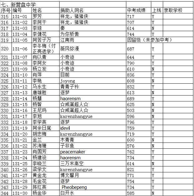 本人peacemaker,曾捐助新营盘中学初一59班学生肖国芳(131-23号),很高兴她中考上线,我愿续捐!