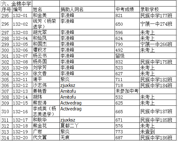 注:128-48杜泉,捐助人:磨房龙云轩,成绩562分,录取学校:宁蒗职业中学补习。浦老师统计分数时候笔误,现已纠正了,谢谢理解。
