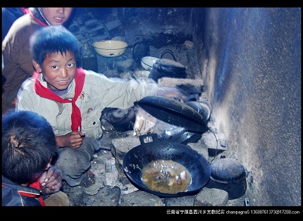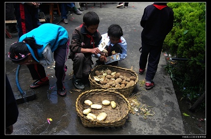 学生们平时只能吃土豆、野菜等。一年也很难吃上肉。