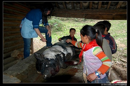六一节到了,为了让山里孩子们过了一个愉快的六一节,我们得到热心网友捐助了一头猪,并由小蕾(香槟)亲自掌勺给这些一年很难吃上肉的山区孩子改善伙食。