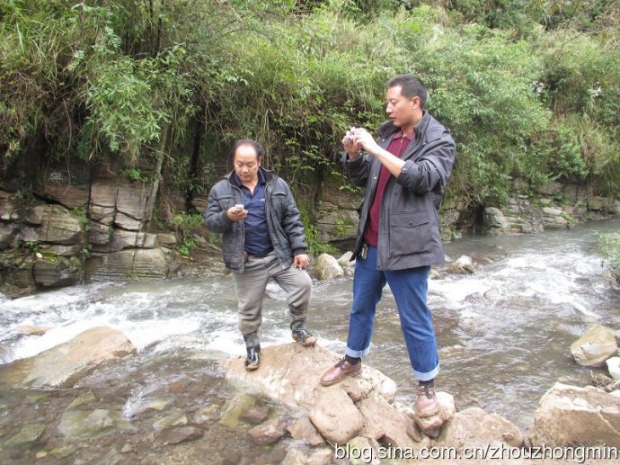 : [当地中心校校长及当地村民同我一起考察拟修桥地点]