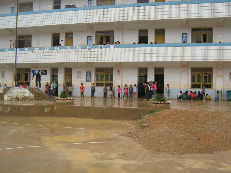 联合小学位于贵州省大方县猫场镇西部。改址建于2000年。仅有一栋900平方米的教学楼。校园占地面积8533平方米,服务半径4公里。现有教师21人,拥有学生504人,共设9个教学班,一个学前班。目前是猫场镇最大的一所村级完小,每年均以优异的成绩名列全镇村级小学前茅。但从联合小学东北侧旅游路至校门的一段学生必经之路,全长180米,建校时宽7米。整个路面尽是黄色泥土,路面倾斜直至校门。一到雨天泥泞不堪,滑不溜秋,孩子们上学、放学一步三滑,稍不留神就会出现安全事故。为了学习,孩子们勉强拖着沉重的步伐,带着黏在鞋上的糯泥进入校园,泥浆顺路流至学校,每年为了除此淤泥全体师生都感到头疼。最可怜的是教师、学生一年之中只有极少数时间穿上干净点儿的鞋。教师们骑车上课进得来出不去,有时干脆把车停在旅游路上。这段路的两侧,由于农户受边远贫困山区的传统影响,思想老化、倔强,每年都要垦挖学校公路,导致7米宽的路现在只有5米宽了,学校领导看在眼里急在心里。为此,学校和农户常常闹矛盾。自建校以来,联合小学代课教师多,开支大,没有经济实力建设这条患路。
