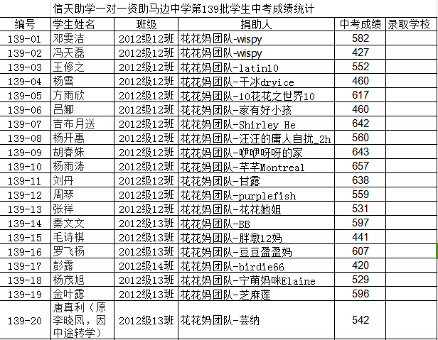 标题: 2015年信天助学初中生毕业中考成绩(2015年7月18日更新)
