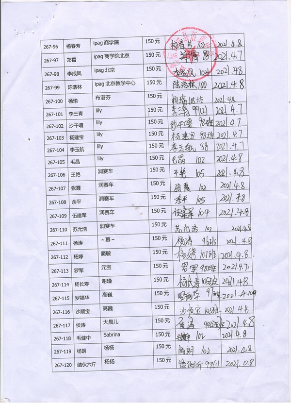 第267批蒗渠中学(2021年3月-2021年8月)受助学生签字确认单
