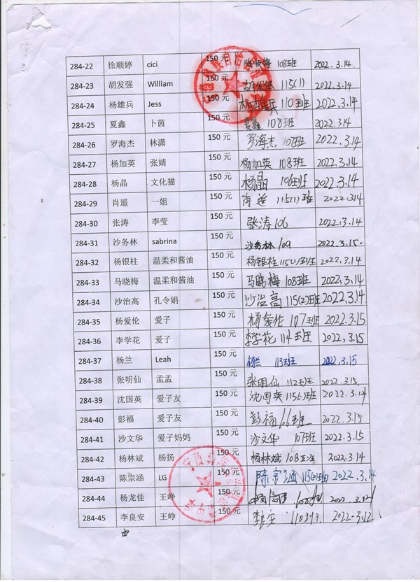 第284批蒗蕖中学(2022年3月-2022年7月)受助学生签字确认单