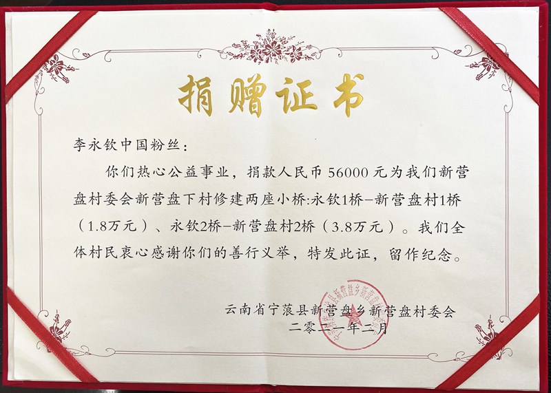 捐赠证书