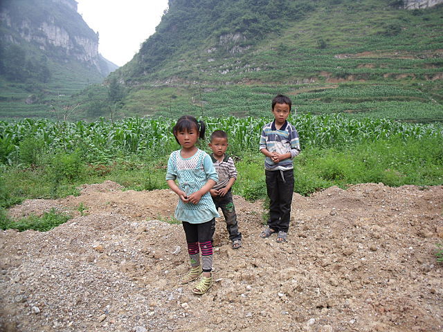 新民村有8个村民组,人口1880人(按人口结构测算,应该有适龄学生225人)。这里属于石山区,土地贫瘠,人均耕地仅一亩,主要作物为玉米、马铃薯和豆类,仅能基本解决温饱,花钱则靠青壮劳力外出打工,近年来靠外出打工的收入和政府的资助,村民住房条件有所改善,但还是可以见到一些住人的茅草屋,据村干介绍,上面几个村民组还有村民住在山洞里。
