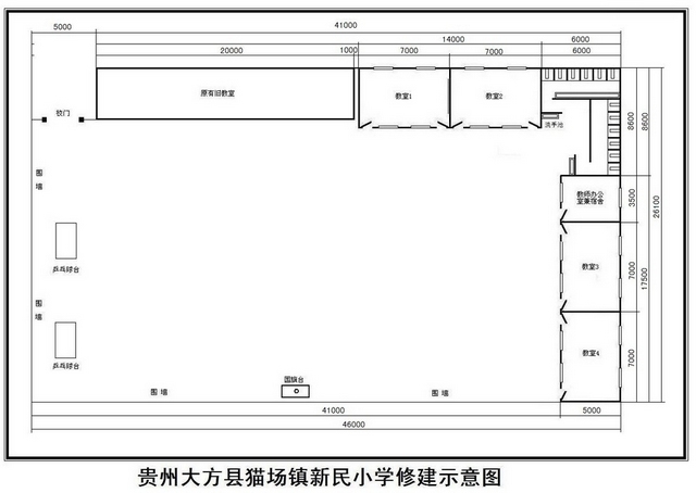 1、主体建筑——含4间教室和一间教师用房 教室 5米x7米x4间 教师用房 5米x3.5米x1间