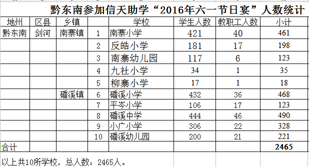 以上总合计:宁蒗县参加2016年六一节日宴会人数为:42028人。