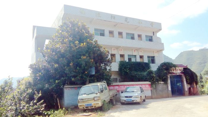 阳光小学位于贵州省毕节市纳雍县化作乡野鸡落村,趟过河就是大方县猫场镇。