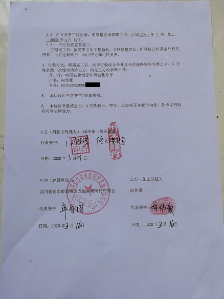 注:志愿者刘永奇通过现场走访,并和村委会协商达成意见,该路所有岩层破碎费用由村委会解决。