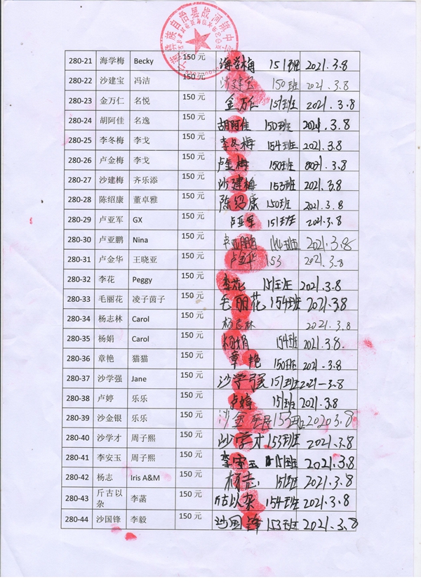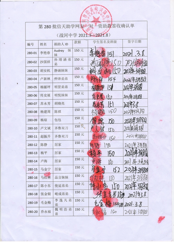 第280批战河中学(2021年3月-2021年8月)受助学生签字确认单