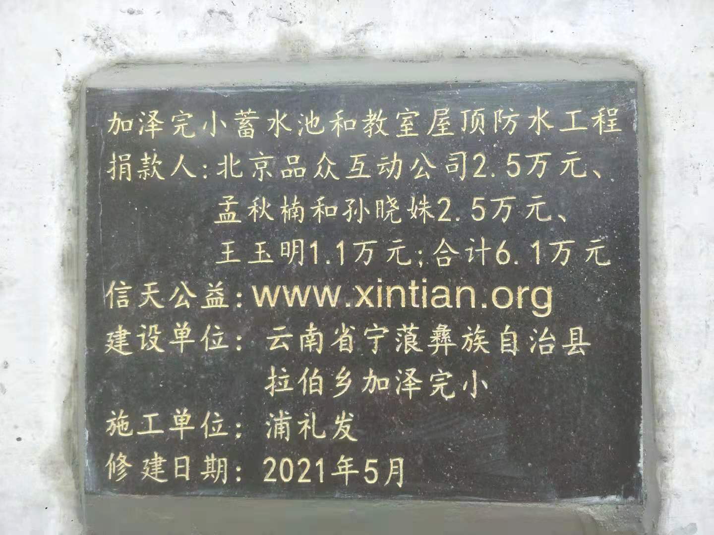 标题: 云南宁蒗县拉佰乡加泽完小蓄水池和教室屋顶维修