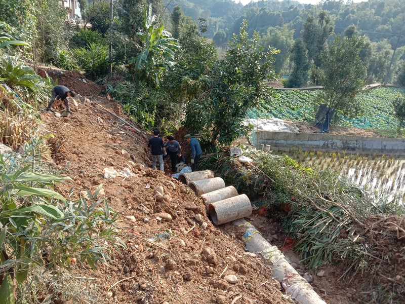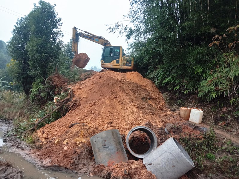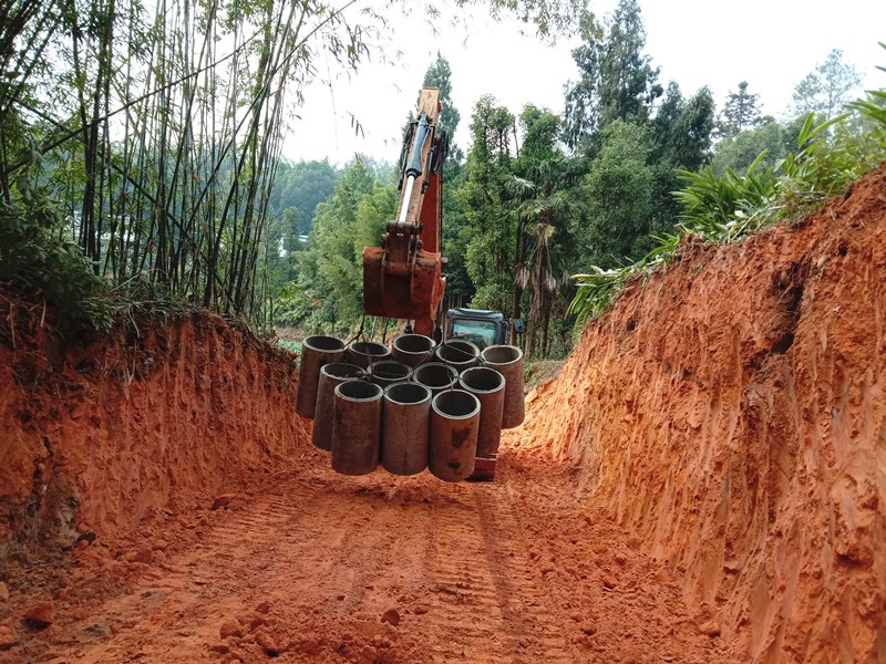 铺设涵管。