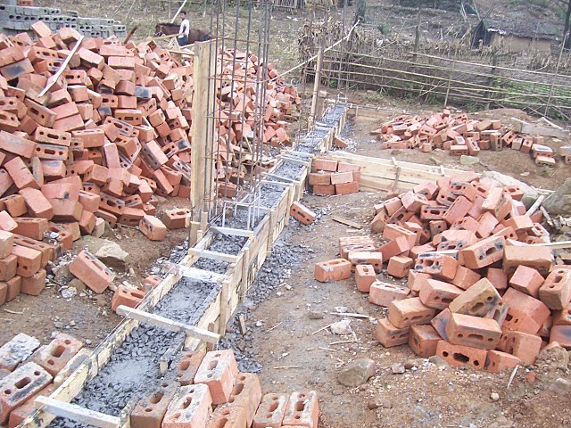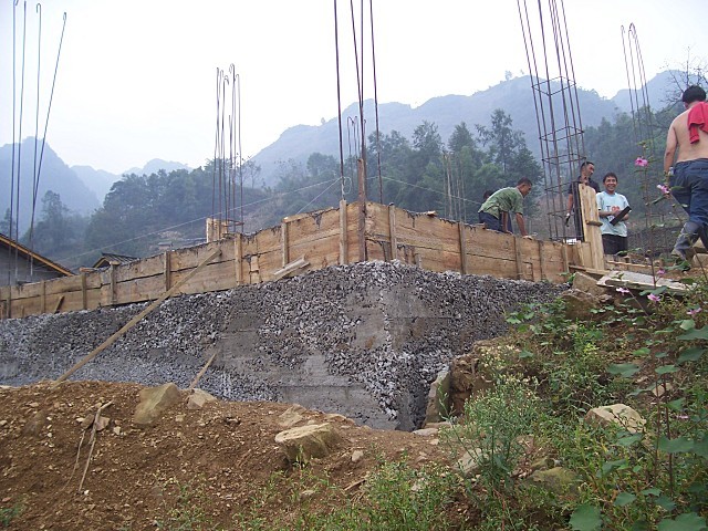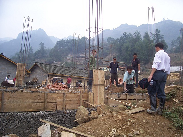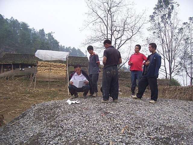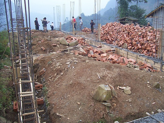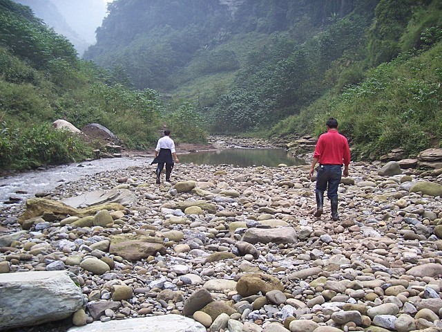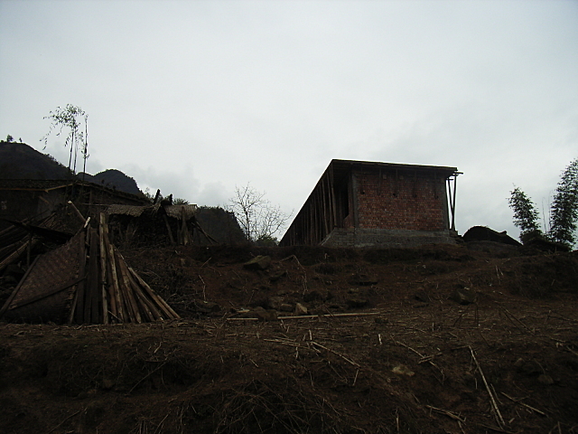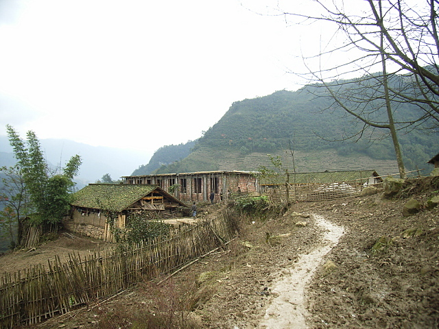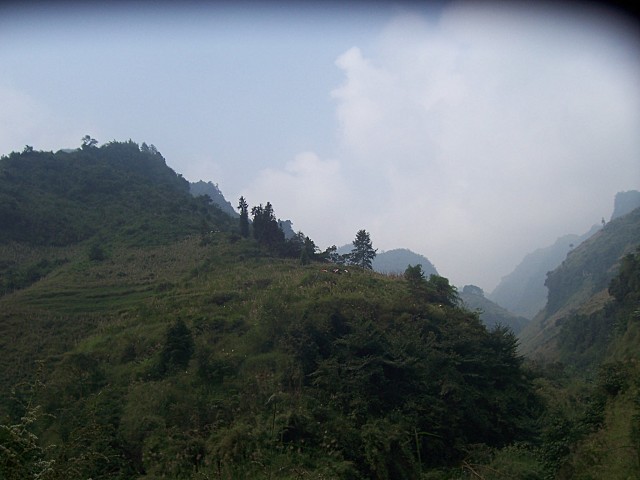 他们准备先到较远的土坝村校,而马队是往高山上的十二坝村校工地运送物资。可以看见,刚才遇到的马队已经在爬对面的大坡了……