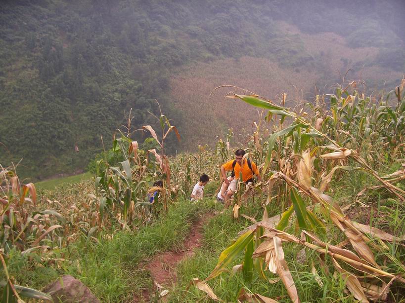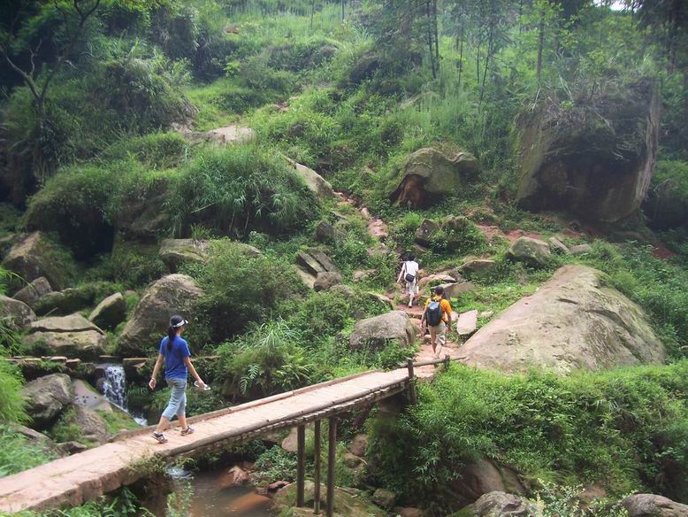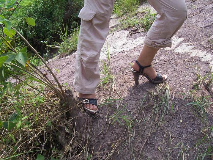瞧这个山里妹子,,,高跟鞋那么高,有8公分,和我们一起走如此陡峭的山路,却如履平地,走得飞快...哪怕是跳跃河中的大石头。..真是PF啊...