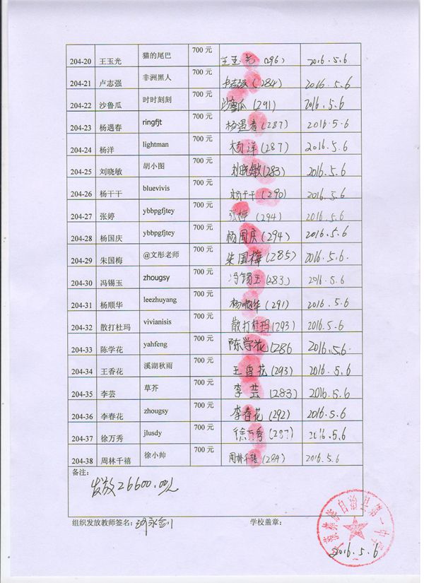 (26)资助人:yahfeng,学生编号及姓名:204-33陈学花,2016.07.30淘宝店付款1400元,高二资助款。