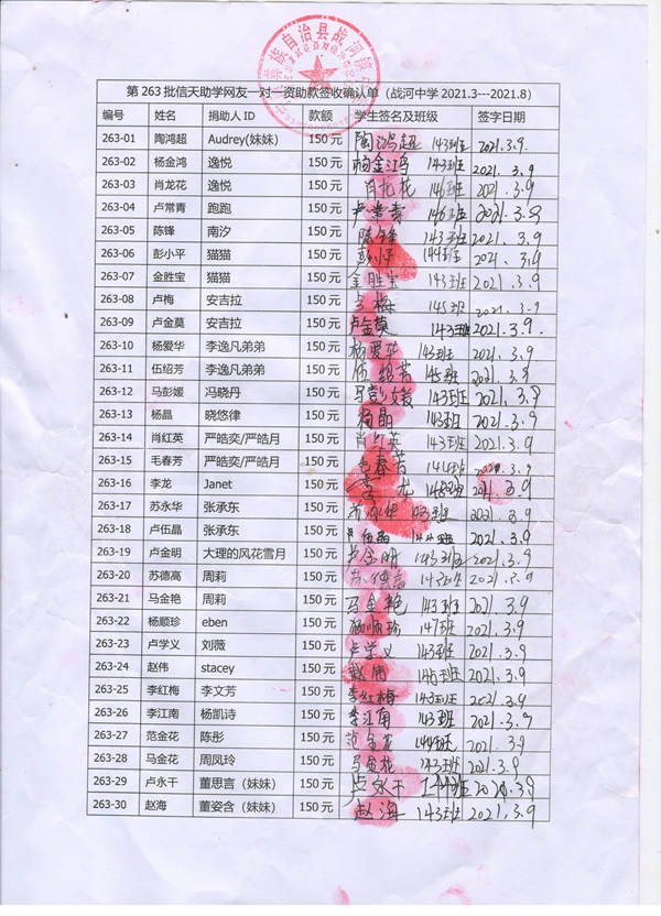 263-53王军 ,因中途转学,资助款转给陈志文;