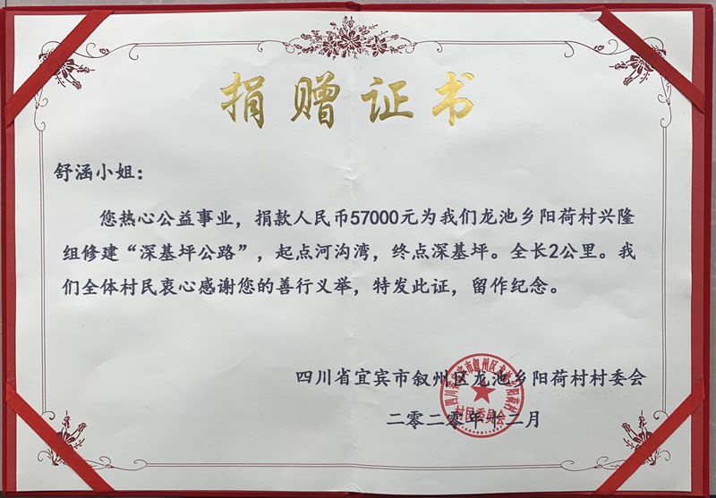 捐赠证书。