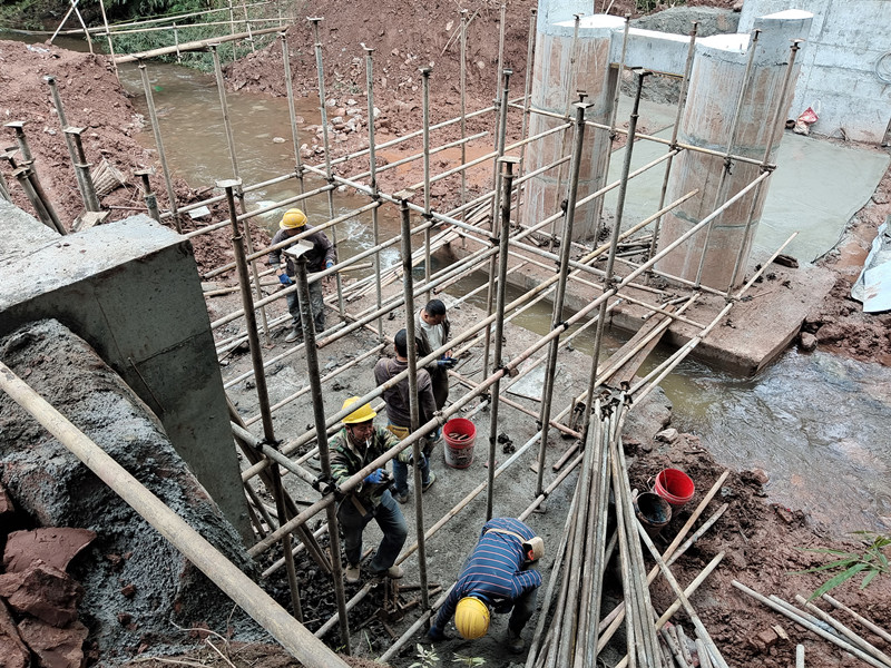 铺设桥面,先支模版。