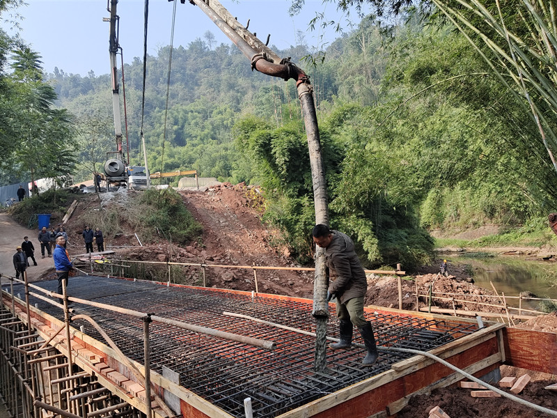 桥面浇筑水泥。