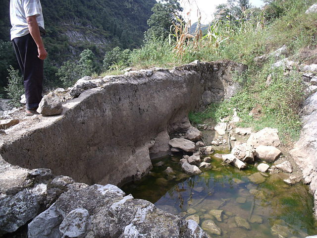 这个旧水池将作为收集雨水的沉淀池,在从这里把干净水引到我们新修的水窖中,供孩子们饮用