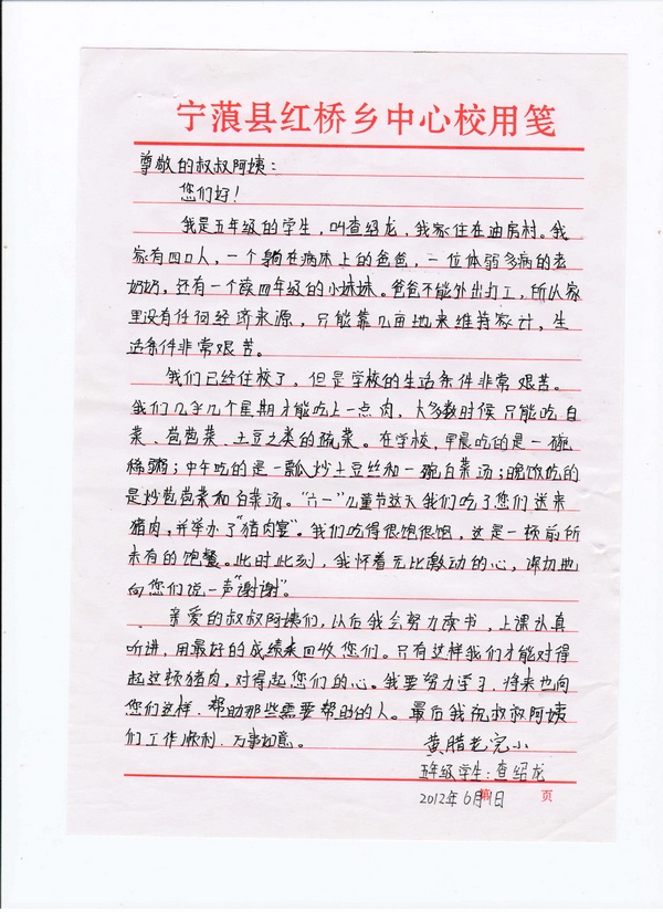 红桥乡黄腊老完小2012年六一慈善晚宴学生感谢信1_nEO_IMG.jpg
