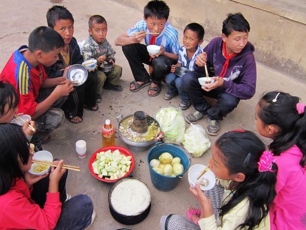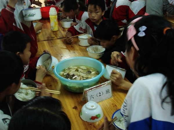 这个学校做菜的条件受限制,所以就给学生开的猪肉火锅,大块猪肉涮着吃。