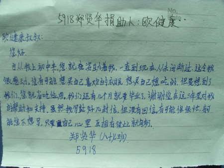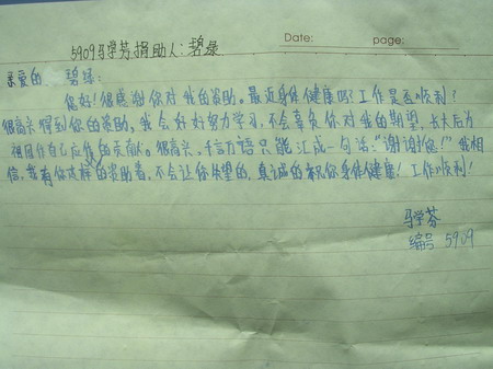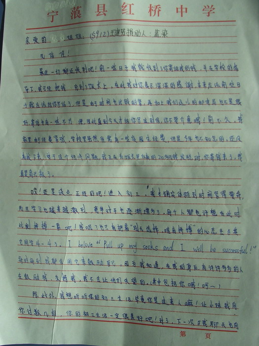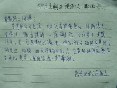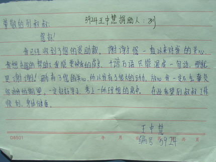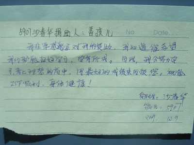 标题: 第59批红桥中学受助学生留言