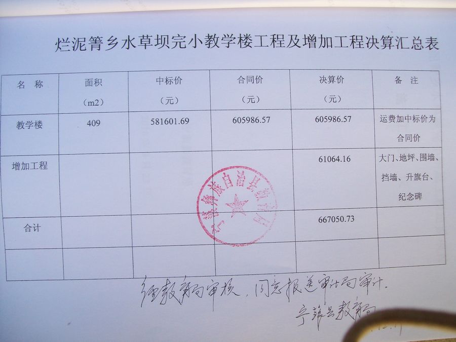 三、宁蒗县烂泥箐乡水草坝完小教学楼建设工程决算文件: