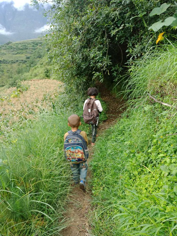 小学生上学之路,等修好了路之后,就可以坐拖拉机、面包车上学了,或者骑自行车上学了。