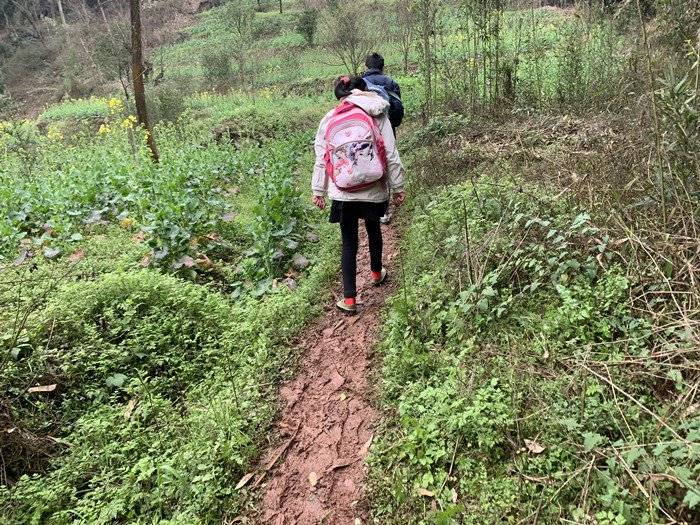 小学生上学之路,等修好了路之后,就可以坐拖拉机、面包车上学了,或者骑自行车上学了。