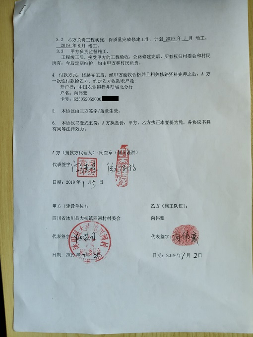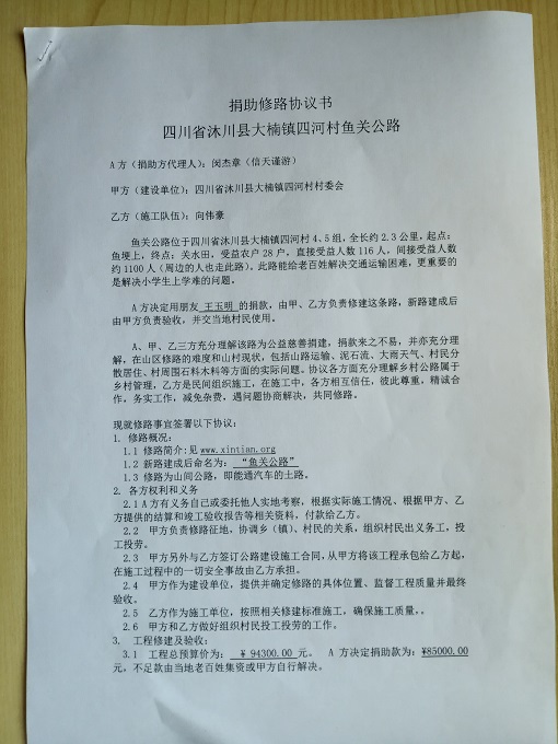 捐助修路协议书