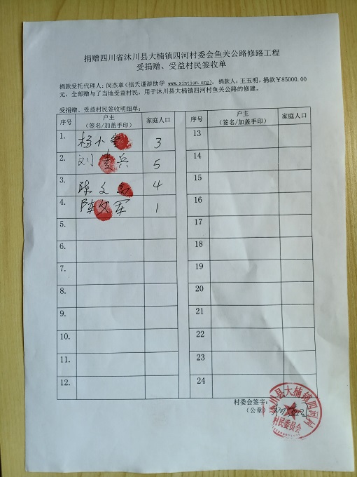 受益群众签字