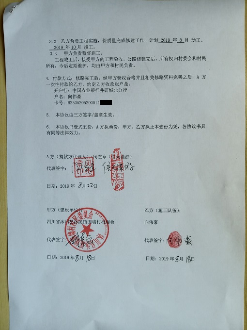 (4) 有的地方村民太困难,在大山更深处,这样,我们就尽量不让村民再集资了,只投工投劳就可以了。而,有的地方小水泥路就通到了山脚下,我们修路来接通外界的小水泥路,这样,材料可以直接运输到山脚下,村民除了投工投劳,就再集资一些钱,我们共同修建山村公路。