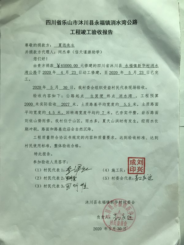 (1)爱心人捐款、村民投工投劳一起修土路,干季能通车;