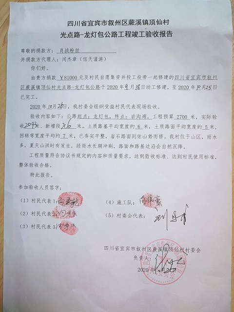 (1)爱心人捐款、村民投工投劳一起修土路,干季能通车;