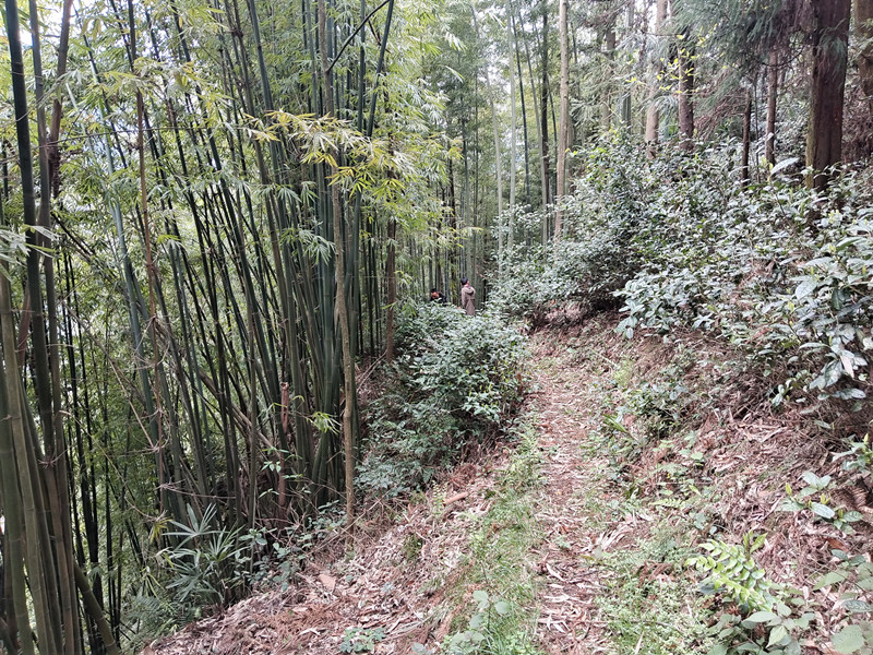勘察路线,计划把这里的羊肠小道扩宽修建成能跑四轮车的乡间土质公路。