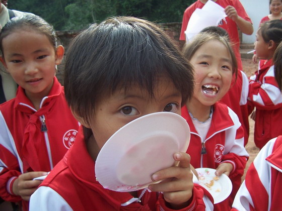 蓝调共和走访记录:"应周老师的要求,周校长代我们在马边给孩子们订了个大蛋糕。周老师说乡下的孩子们从来没有吃过奶油蛋糕,一定很开心很难忘。果然是的。”