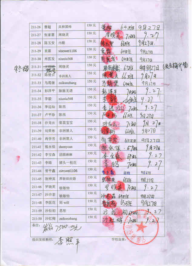 标题: 第211批受助学生名单(蒗渠中学50名,散捐,完毕)