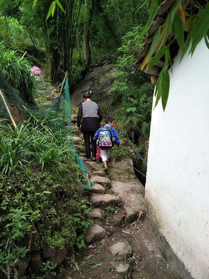 小学生上学之路,等修好了路之后,就可以坐拖拉机、面包车上学了,或者骑自行车上学了。