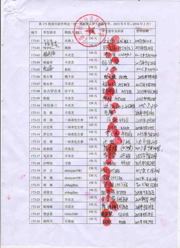 173-53和颖,因中途辍学,资助款转给 吉命阿罗;