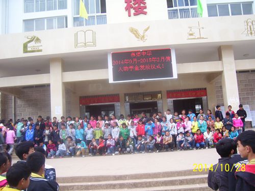 蒗渠中学,一起发放资助款,学生领款照片