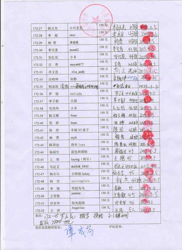 第172批l蒗渠中学(2015年3月-2015年8月)受助学生签字确认单